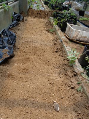 当地は粘土質で水はけが悪いため、土を入れ替えました。