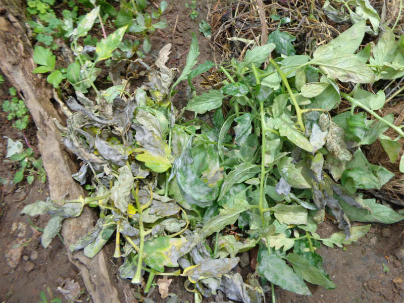 黴のついた葉は、手作業で取り除きます。