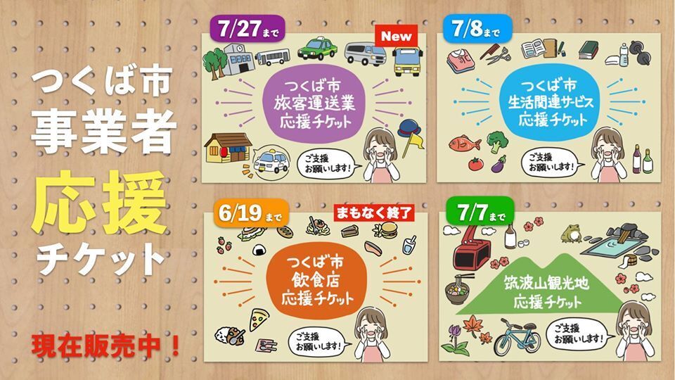 また、つくば市事業者応援チケット実行委員会では、現在飲食店応援チケットと合わせて4つの応援チケット事業を運営しております。