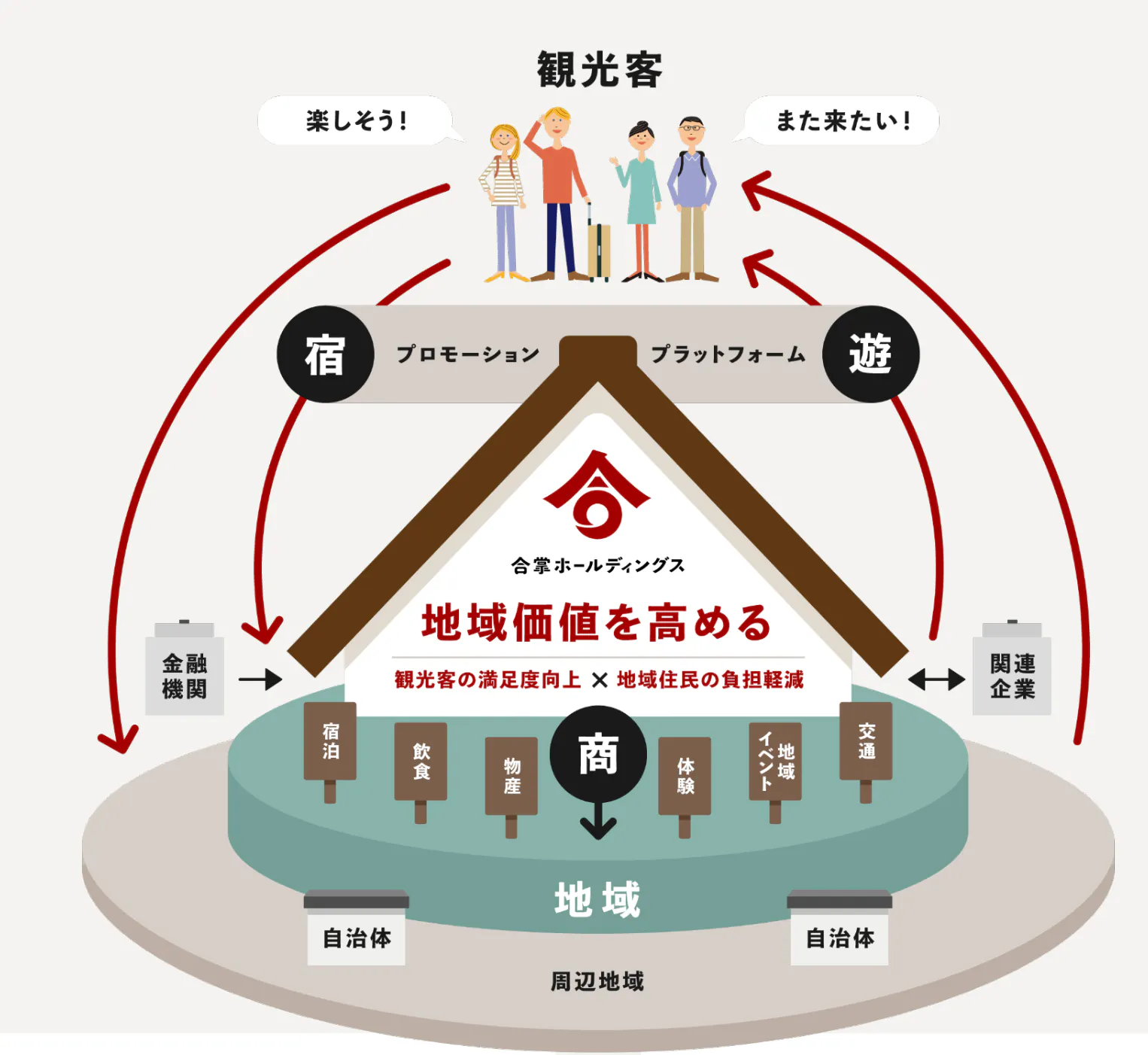 完全予約制の取組を通じて白川郷を次世代に繋いでいく組織の必要性を感じ、2019年8月に合掌ホールディングスという組織を立ち上げました。Local First(ローカルファースト)として地域住民の意見を尊重し、来ていただいたみなさまに満足いただけるような取組をしています。