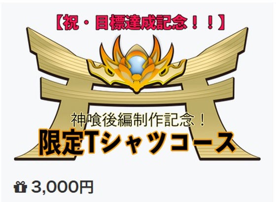 締切までは神喰後編放送をもっと盛り上げるべく、そして『県民総勢神様まつり』の輪をさらに広げるべく、クラウドファンディング限定Tシャツのリターンがスタートしました!!