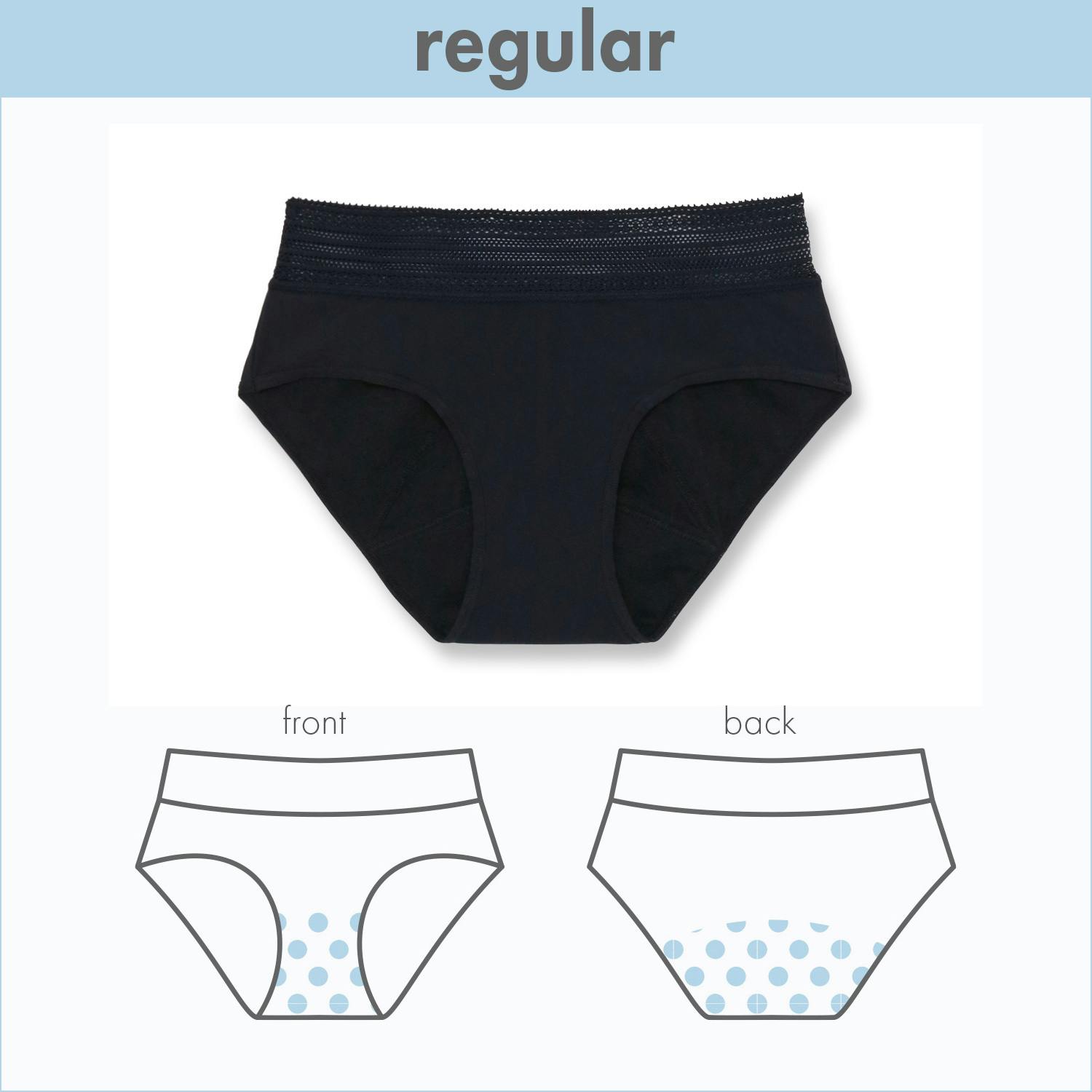給水量の一番少ないレギュラーでも昼用ナプキンよりも給水量が多めで、通常のショーツのような履き心地ですので、安心してお使いください。