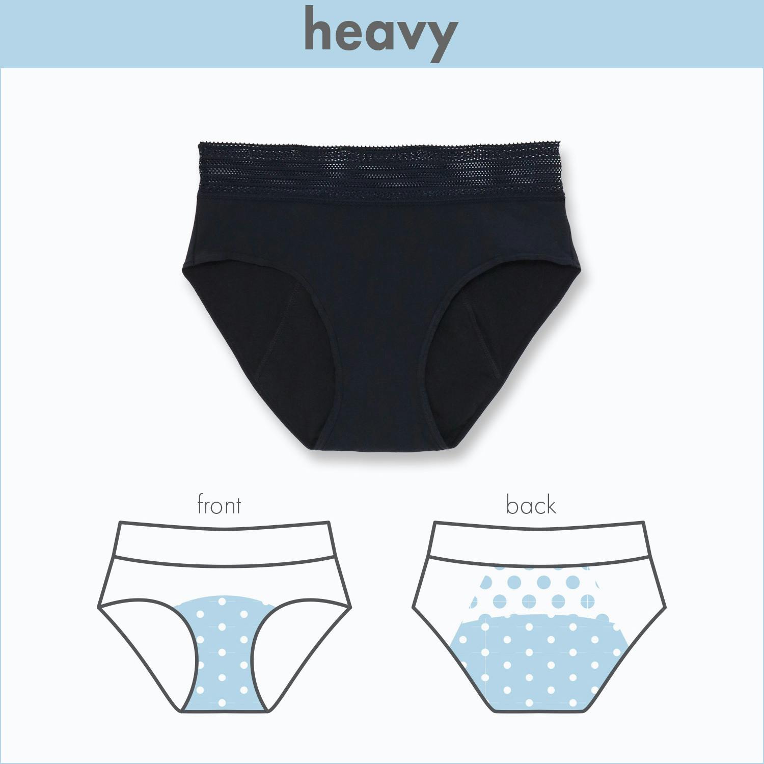 経血の量が多い時はナプキンやタンポンなどと一緒にお使いください。
