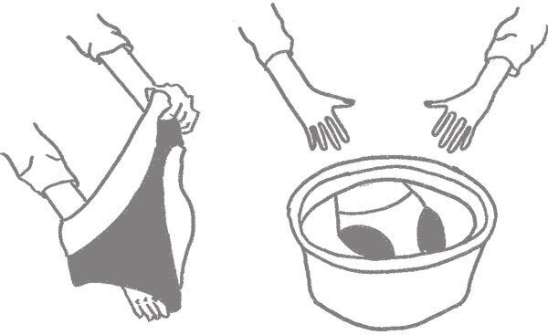乾燥などで経血が固まってしまった場合は、布ナプキン同様にアルカリ系の洗剤(肌の弱い方はご使用の際はお気をつけください)を入れた水につけ置きしてからすすいで洗濯機で洗ってください。