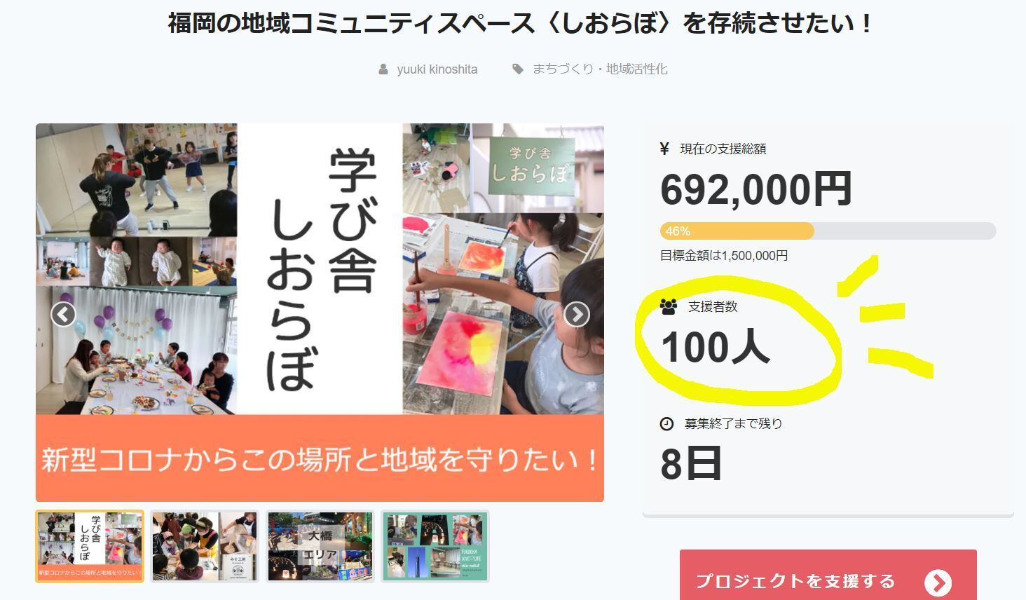 走り続けて、残りあと2日。明日が最終日となります。現在158人、84%達成、現在のご支援総額は1,265,000円となっています!!!「西日本新聞を見て支援したかったけど、クラウドなんちゃらはちょっとやり方わからなくて…」と、直接来訪いただいて、ご支援金を預かることも。お預かりした支援金は、私が代理でコンビニ払いにして、クラウドファンディングに入れております。(最終日の前日18時を回りましたので、お預かり→コンビニ払いはもうできないみたいですね…)もし、「クラウドファンディングのやり方がわからない」という方がおられましたら、ぜひ教えていただけたらと思います。糸島どんたく農園さまより、美味しい無農薬野菜の売り上げでご支援いただいていた分も、週計してクラウドファンディングのほうへ入金させていただきました。皆さまの暖かさ、人間の深さにじんわりとした感動をもらっています・・・。明日までは精一杯わたしも動き、無事に完了したあとはより良い形でご報告をお伝えできるよう、考えていきたいと思います。まだ「〈学び舎しおらぼ〉がこんなことしてるってよ」と知らない方に、ぜひシェアしていただければと存じます!!!よろしくお願いいたします。