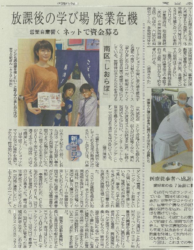 残り4日…ラストスパートです。5/27(水)の西日本新聞 朝刊に掲載されました!!!地域交流と、子どもたちの居場所としてご興味を持っていただき、開催めざす「こども居酒屋」も面白そう!と言っていただきました^^マスクにかまけて、ほぼすっぴんの時に限って「写真を撮って送ってください」と言われ…。あとからPCでメイクをしてる風に少し盛っておきました。笑(Photoshop入れててよかった)この「こども居酒屋」については、西日本新聞掲載後に問い合わせがいくつかあり、TV放送などの取材も可能性がありそうです。■地元を支援■こどもたちを無料で招待したい■とにかく笑って明るいイベント!を目指すため、もう少し支援金を集めていきたいと思っております。どうか、このラストスパートを一緒にシェアしていただけると嬉しいです!!※追記遠方の方向けリターン追加として、以下を追加しています^^■ 〈稲穂商店〉のギルトフリーお菓子とお礼のメッセージプランしおらぼで開催するマルシェにブース出店していただいている〈稲穂商店〉のギルトフリー焼き菓子数点セットお礼のメッセージ。「ギルトフリー」ってなあに?というご質問をいただきます。ギルトとは罪悪感というような意味合いがありギルトフリーいわゆる「罪悪感のない」というニュアンスで用いられています。白砂糖・小麦粉・添加物不使用。ギルトフリーお菓子甘いものを食べるとつい罪悪感を感じてしまう・・・そんな悩みを感じずにお召し上がりいただけるお菓子です!