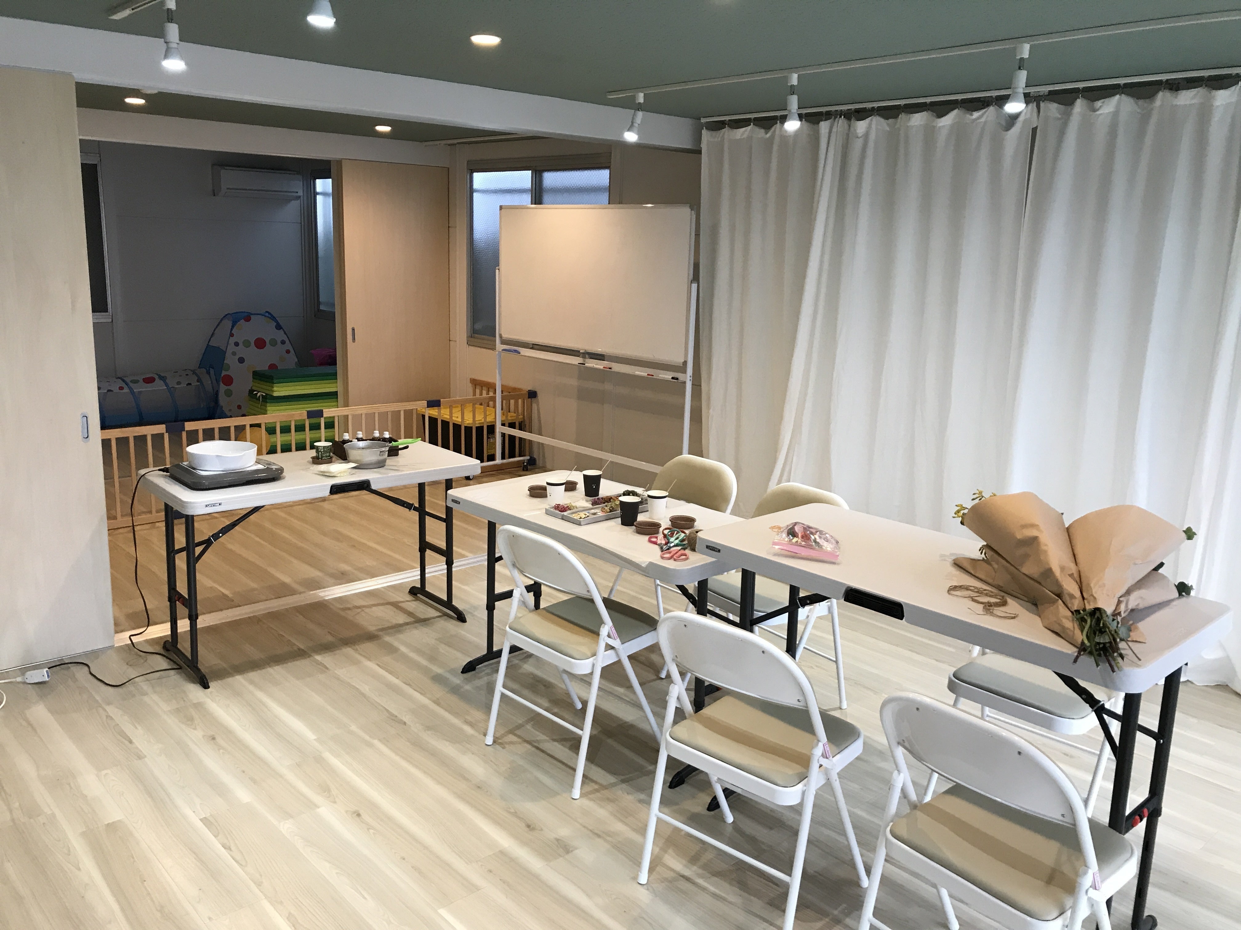 単なるママ会で長時間ゆったりレンタルするグループ、ワークショップを初めて開催する講師、農家から直送でマルシェを行うなど、いろいろなことにご利用いただいています。また、小学校の目の前という立地から、お祭りや運動会などの町内・学校のイベント時には「休憩所」として場を無料開放し、トイレ・授乳、おむつ替えなどにも使っていただいています。「うちの子、今日そこへ来てませんか?」とお電話をもらったり、雨の日には親子の待ち合わせの場になっていたり、毎日賑やかしい場所になっています。