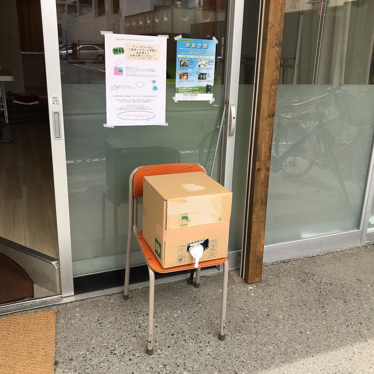 現在、消臭除菌液を無償提供する場所になっています