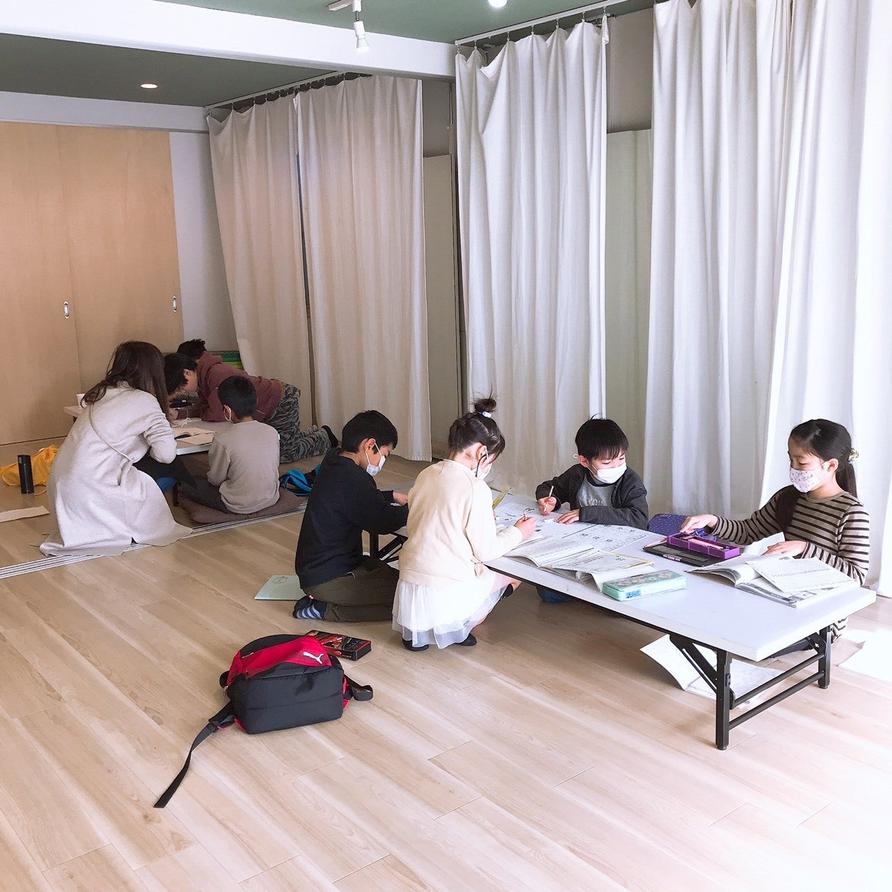 平日の放課後タイムは、曜日ごとに違う習い事を低料金で提供しています。バレエやヒップホップ、書道など以外にもボーカルトレーニング、臨床美術のアート教室など少し変わり種のレッスンがある日も。ランドセルを背負ったまま子どもたちが「ただいまー」と入ってきて、レッスンの前後は宿題を積極的に終わらせるように促します。普通の習い事と違うところは、レッスン前後の時間もゆるく滞在できるところです。ワーキングマザーとして、「帰りに渋滞していてお迎えが遅れる」「低学年だから、鍵を持たせて帰らせるのが怖い」など…一人の親として、とても理解できるからです。周囲に防犯注意情報が出たときなども、なるべく親が迎えに来るまで待機させています。
