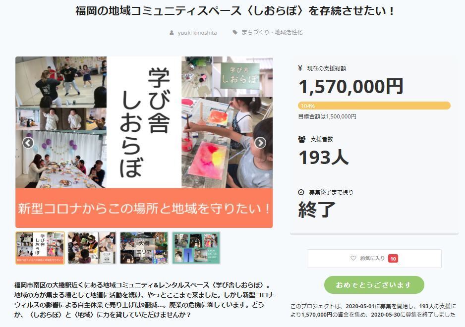 2020年5月末 クラウドファンディング終了