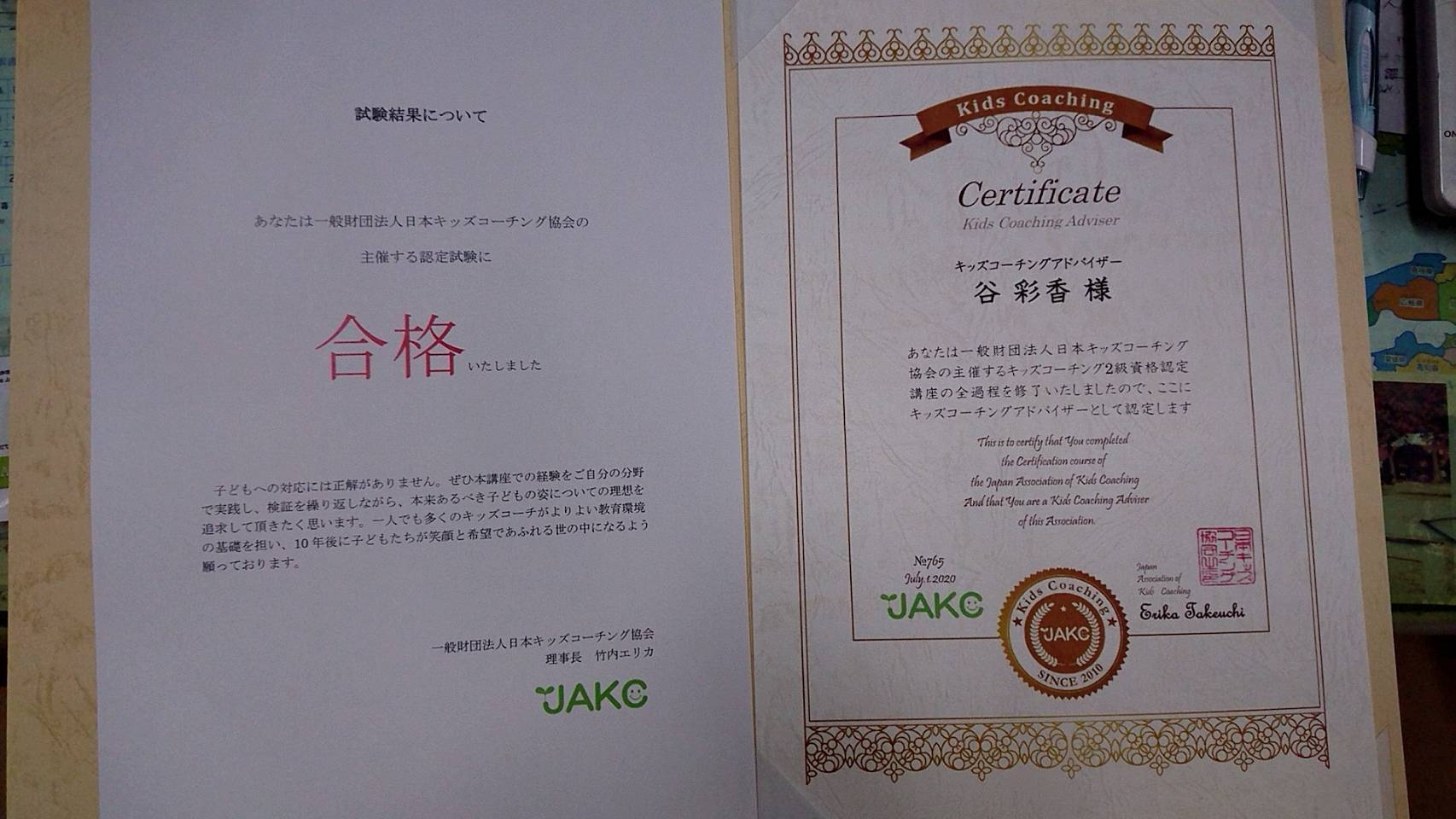キッズコーチングアドバイザー2級も取得でき、次の段階に進めそうです^^*