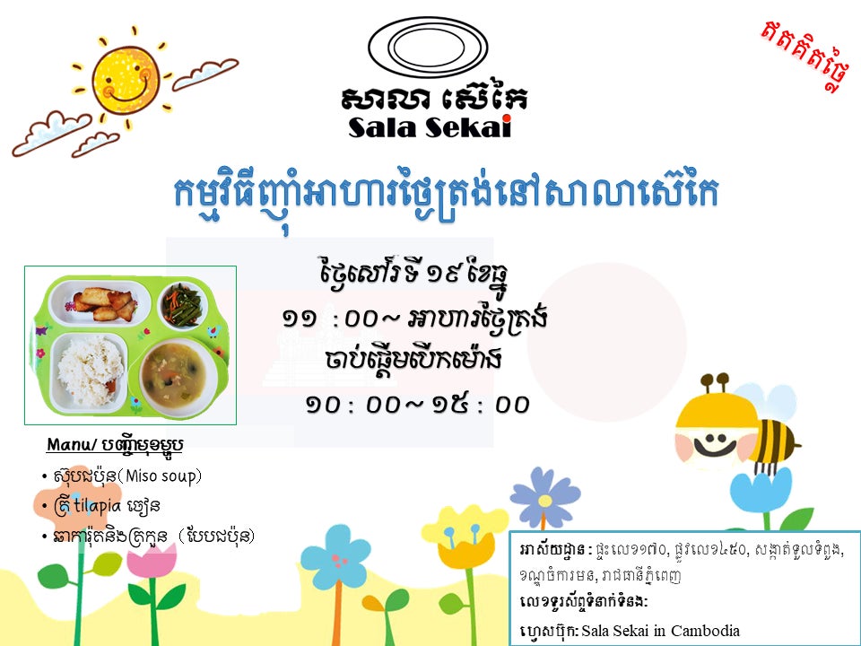 11:30~お昼 日本とカンボジアの融合給食(テーブルマナーなど)