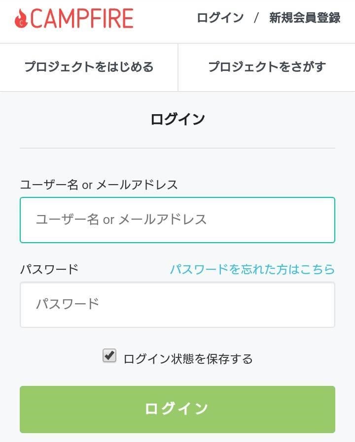 ※CAMPFIREのアカウントをお持ちではない方は「新規会員登録」をしてから、下記の手続きに進んでください。