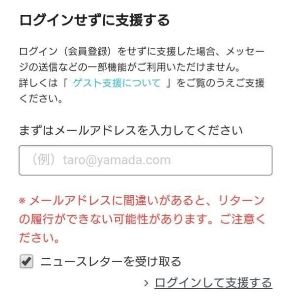 1-3ログインせずに支援した場合は上記の画面で メールアドレスを入力してください