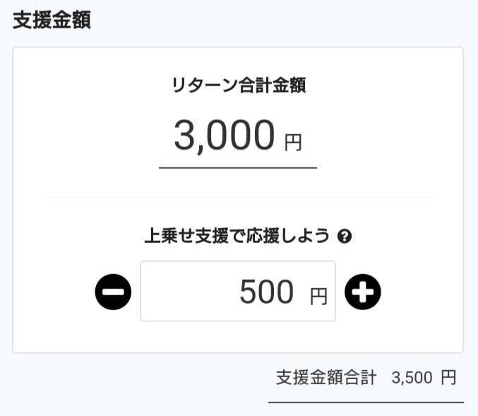 「上乗せ支援でクリエイターを応援しよう」 ボタンで、500円ずつ応援金額を上乗せすることもできます。