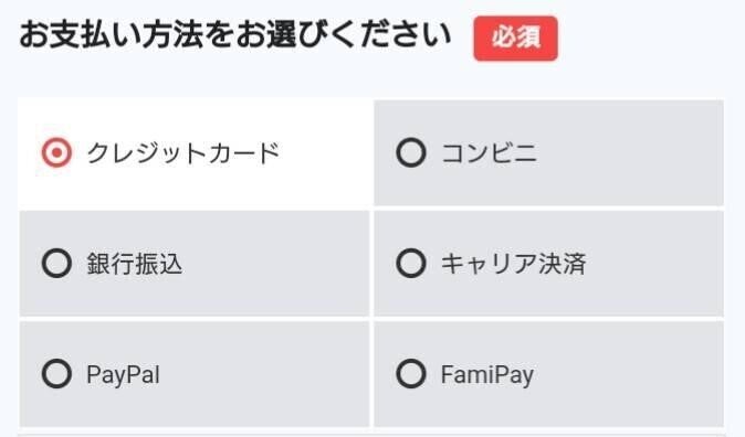 クレジットカード、コンビニ、銀行振込、キャリア決済、PayPal、FamiPayの6種類のお支払い方法から選択し、手続きを行ってください。※別途にシステム料がかかります。