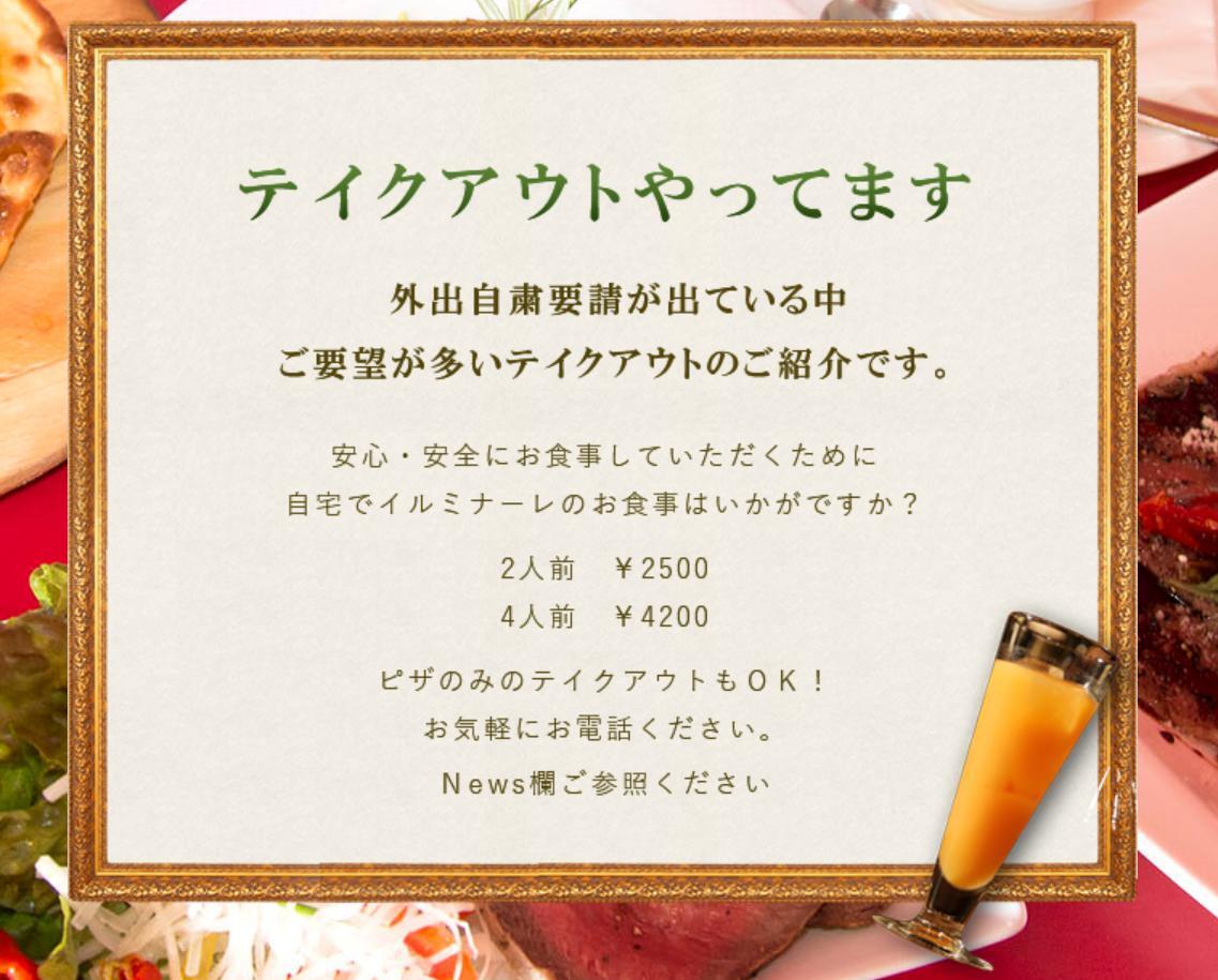 外出自粛の影響で、現在はテイクアウトサービスを開始しています。