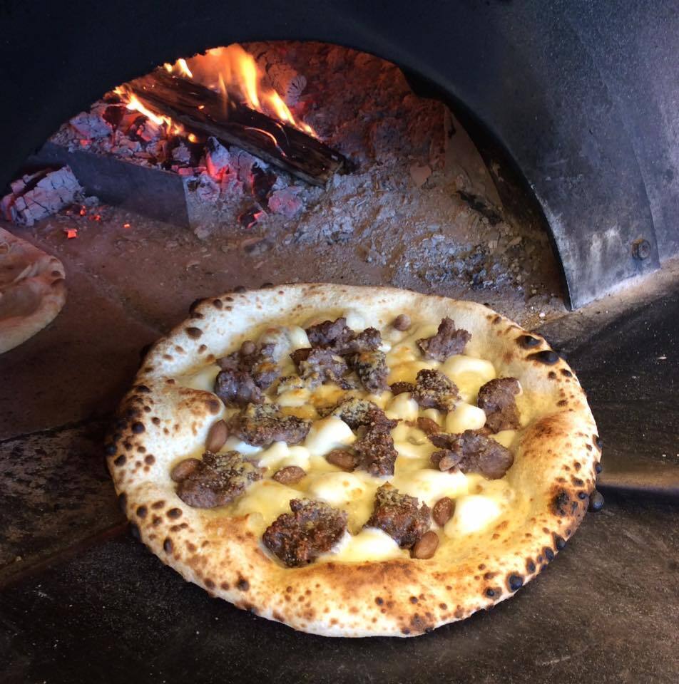 薪はガスの火よりも水分を飛ばすことができるため、サクサクとした食感のピザが焼けるんだとか。