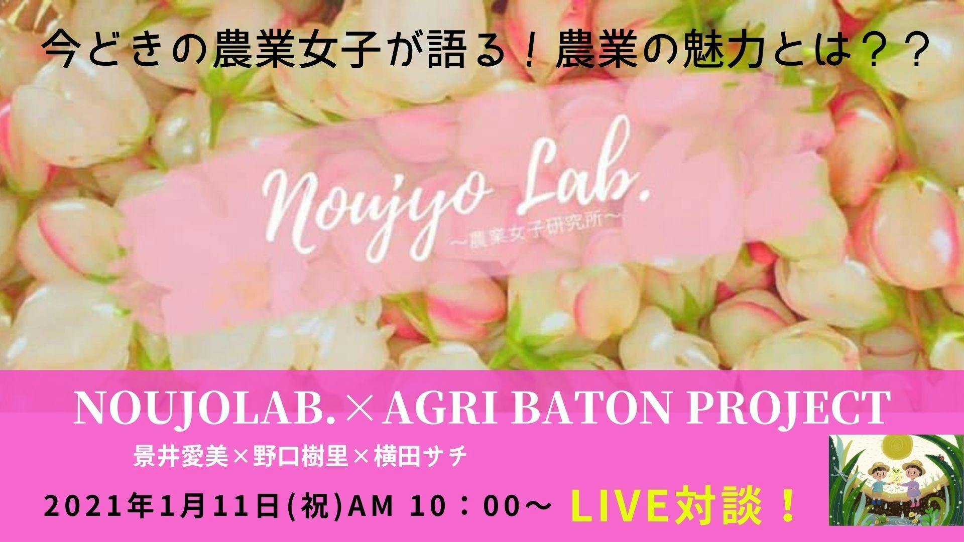 【Noujyo lab.✕AGRI BATON PROJECT】Facebook・You Tube同時配信ライブ対談します! 景井愛実(Noujyo lab代表)✕野口樹里(mama代表)✕横田祥(AGRI BATON PROJECT代表) 2021年1月11日(祝)AM10:00~