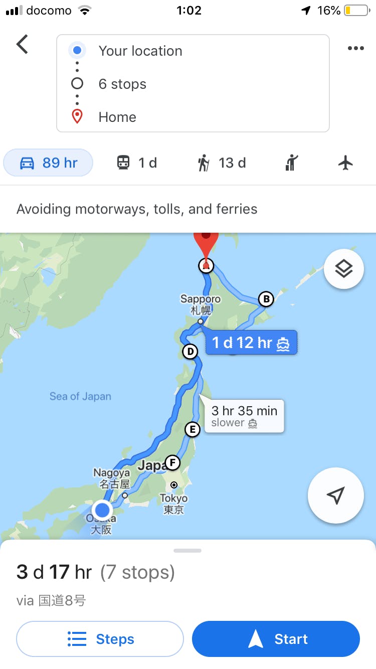 しかし、九州地方、関東地方、東北地方、北海道は大阪からの距離が遠くなかなか気軽に行くことが出来ませんでしたので、今回はそのあたりの地域も回ろうと思っています。※大阪から出発するためルートの関係で、九州地方へは今回行くことが出来ませんのでまた次の機会とします。