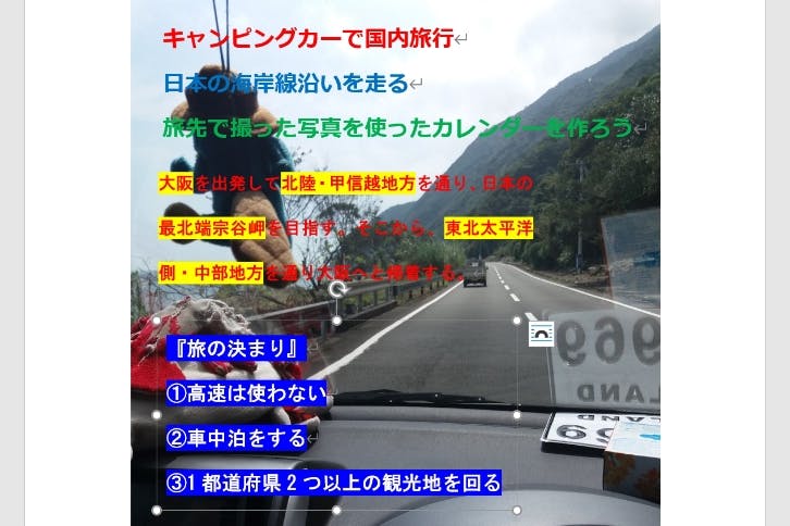 カレンダーには写真の他に、写真についての説明と旅の進捗状況を載せます。