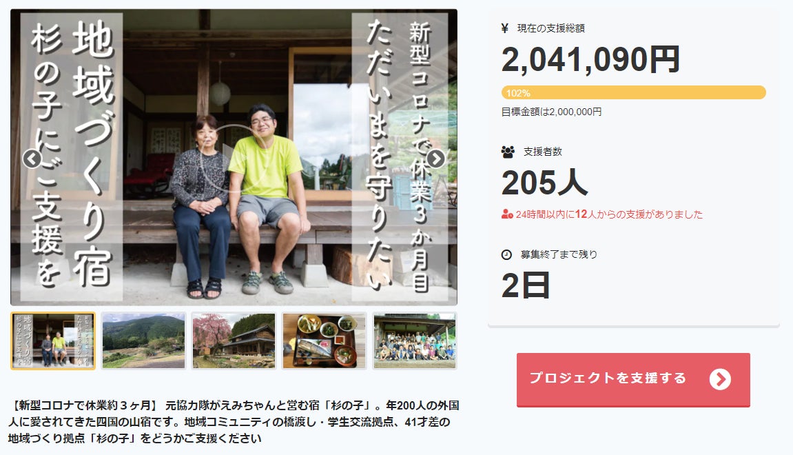宿運営資金以外にも【地域づくりや関係づくり、町や特産品PRに】と始めたクラファン挑戦です、残り時間いっぱい、更なる【町や特産品PR】に努めたいと思います!!