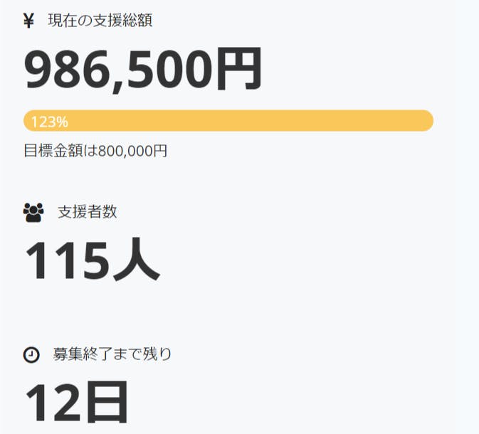 【御礼】支援金額がまもなく100万円に到達いたします。