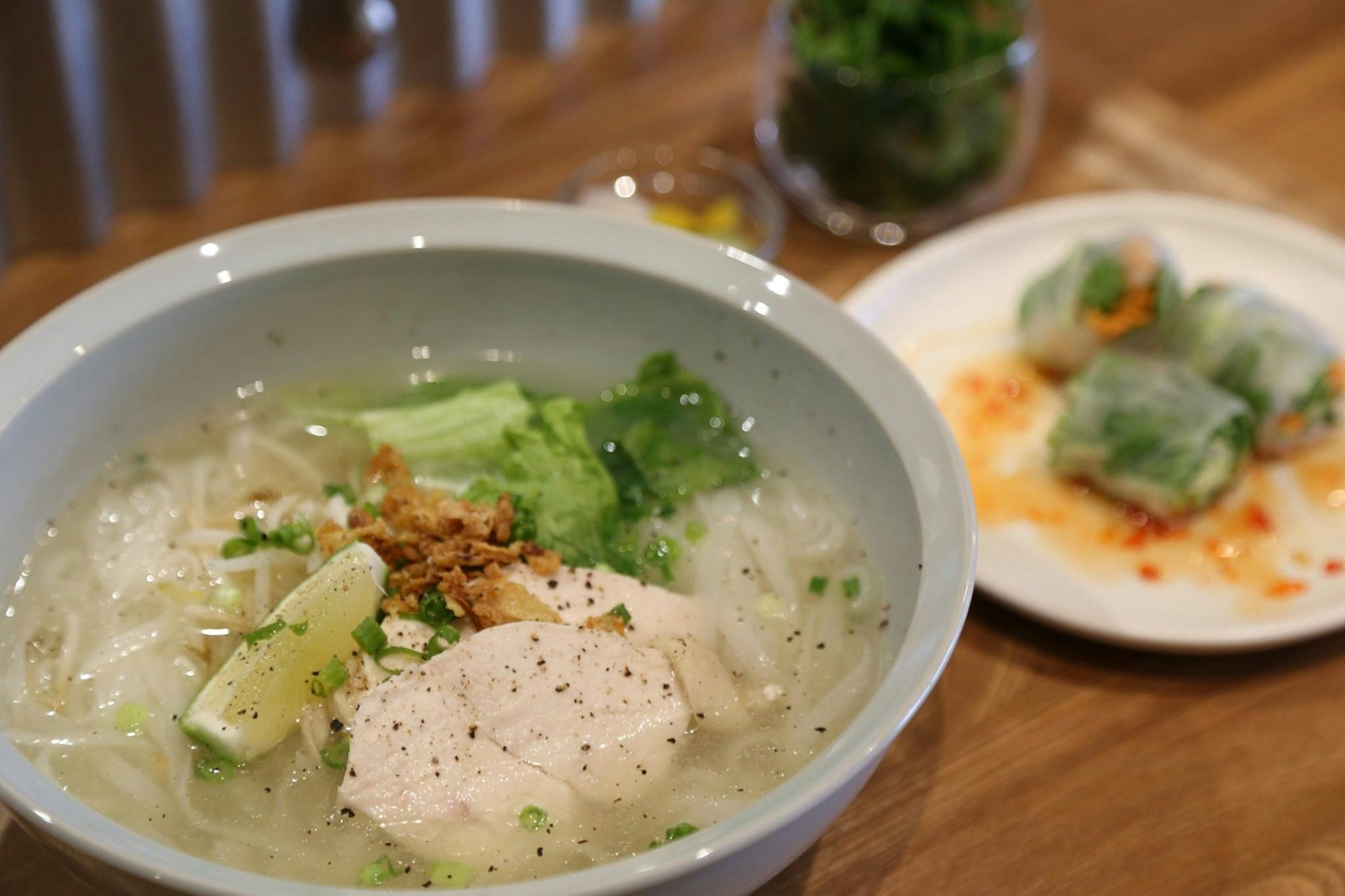 店舗紹介:気軽に楽しめるエスニックメニュー。中でも一押しは津山ではここでしか食べられない!?「こだわりのフォー」。スープは鶏ガラから丁寧に出汁を取り、茹で鶏には大山鶏を使用。岡山産パクチーと自家製ピクルスも付いています。カフェタイムには、ハンドドリップ珈琲もおすすめ。津山を楽しむ3rd place(第三の居場所)として、お過ごし下さい!!