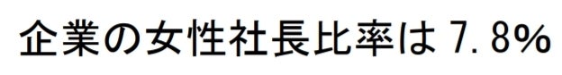 女性社長の企業は 10 社に 1 社にも満たないのが現状です。