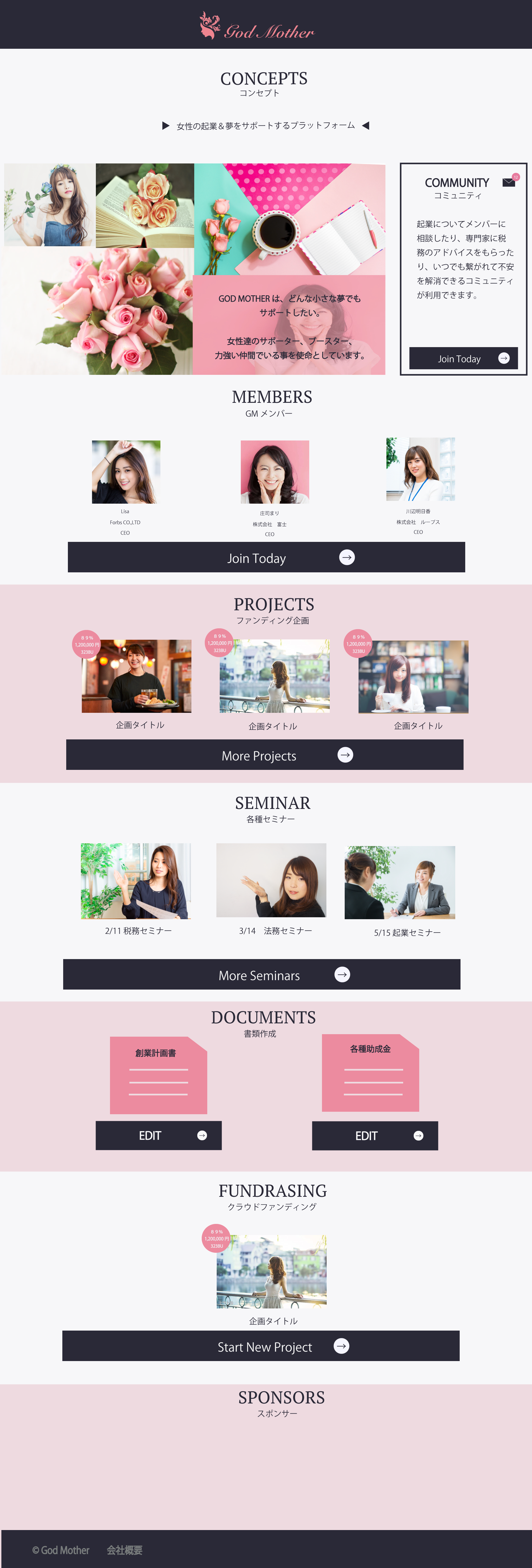 最初から、知っていればよかった事が沢山あって、それらのサポートを一つに提供して、小さな夢も応援される、サポートされるサービスを皆で作っていきたい。GOD MOTHERに出会った事によって、皆さんの人生がブーストされる事を願っております。どうぞ応援よろしくお願いします。