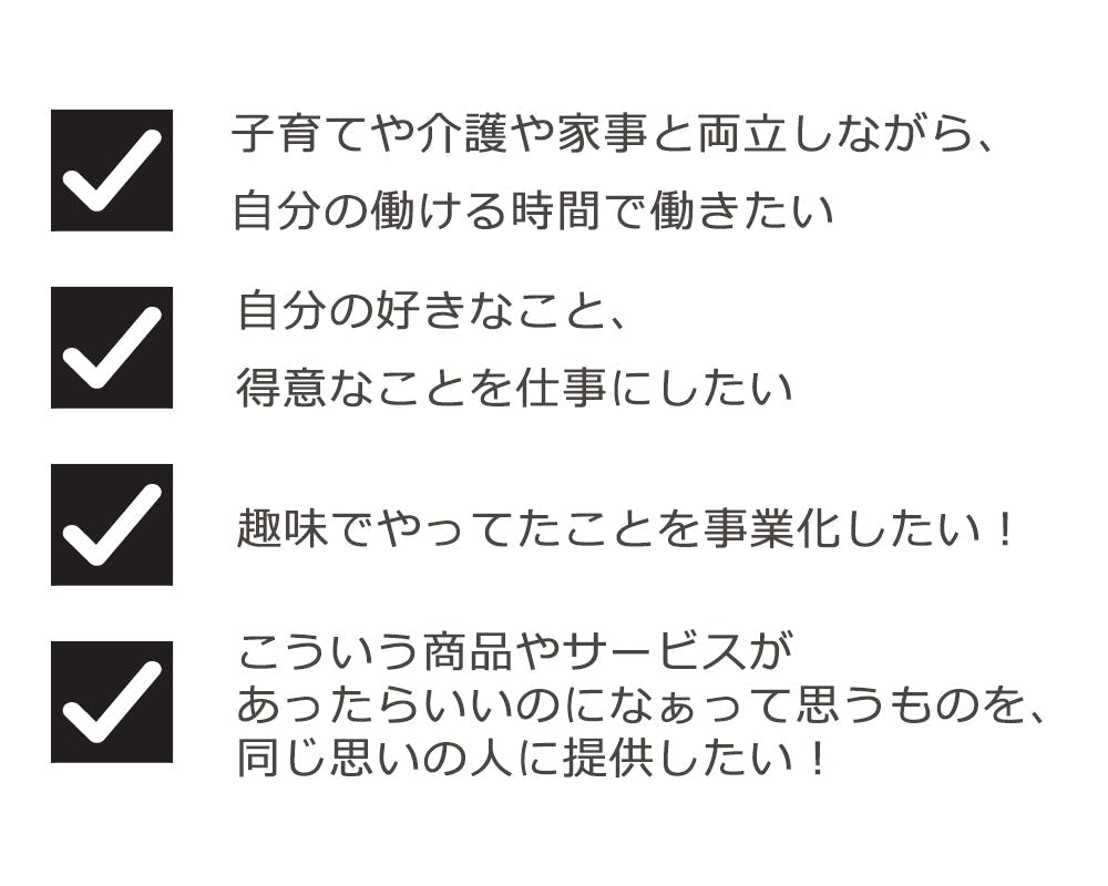 一人で何か始めるのは、とても心細いです。人に話したら、笑われるんじゃないかって不安でいっぱいです。その不安をなくしたい。暖かいコミュニティー、フォーム式で事業計画書を作成してみたり(テンプレも用意してあります)、気軽に相談する事から始めたら、皆さんの気持ちが少し楽になる事を目指してます。「同じ目標持つ同志の繋がり」「仲間との出会い」など、情報交換を目的に、無料のLINE OPEN CHATも同時に開設します。ぜひ使ってください。