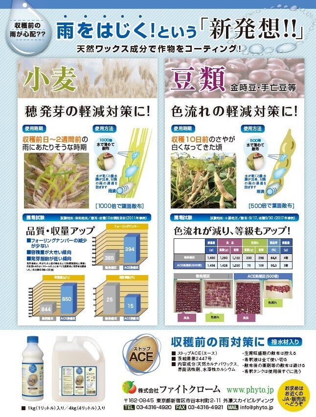 雨をはじくワックス剤「ストップACE」を購入し、「キタノカオリ」を栽培している生産者へ提供します。