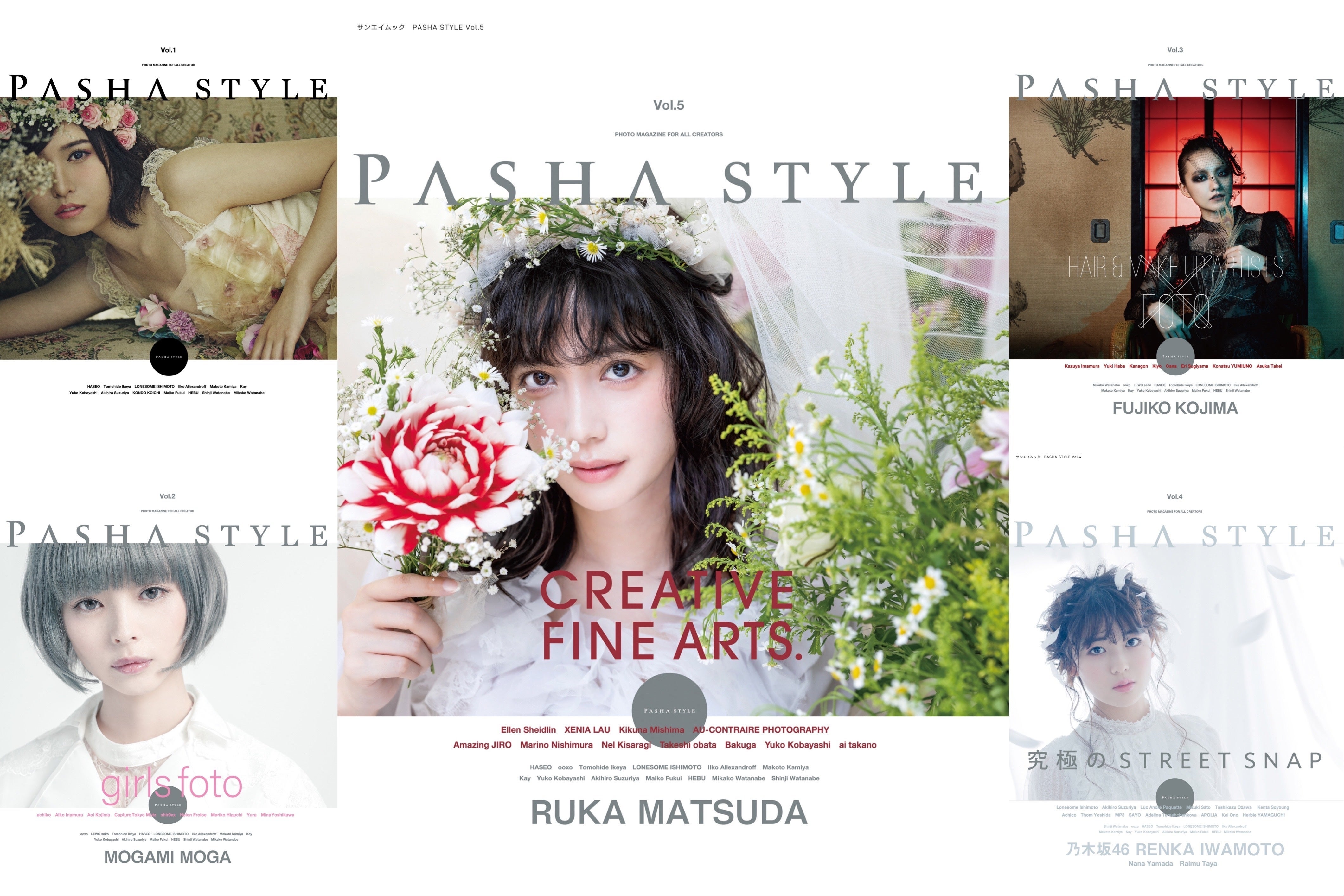 表紙巻頭ページは創刊号も担当しているHASEOが女優松田るかさんを撮影。自身のスタジオでその世界観に普段とは違う松田さんの姿を作品に写し出しています。特集はCREATIVE FINE ARTS. 創作作品を多数掲載しています。