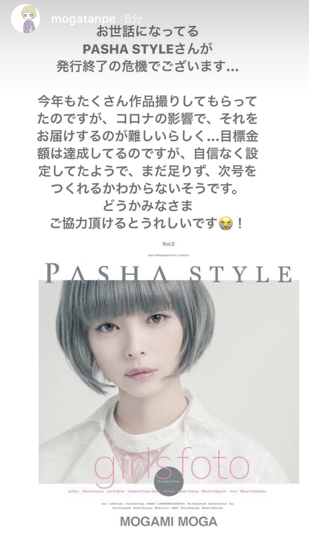 本日支援申込最終日!「PASHA STYLE Vol.6を皆さんに届けたい!」ご支援いただきました皆様、本当にありがとうございます。PASHA STYLE Vol.2の表紙でモデルを務めていただきました最上もがさん、本日ストーリーズにてPASHA STYLEをご紹介くださいました。改めましてありがとうございます。皆様に知っていただくことで、PASHA STYLEは活動を続けることができます。そして、PASHA STYLE Vol.6ご支援のおかげで、誌面用撮影、スタートさせることが出来ました。その模様をいち早く皆様にもご報告させていただきます!撮影は編集長ooxo真剣にチェックし、最高の作品を創っています最高の仕上がり、是非ご期待ください!今回、こちらの撮影での作品がVol.6誌面に掲載されます。最上もがさんファンの皆様も、創作作品ファンの皆様も、紙で作品を見ることを楽しみにしている皆様も必見の1冊になります!次々と写真誌・雑誌が休刊廃刊を迎えてしまった昨今、これからも皆様にポートレート写真作品をお届けできるよう、どうかお力をお貸しいただければと思います。本日、ご支援受付最終日です。どうぞ最後までお付き合いお願いします。PASHA STYLE編集長大森和幸(ooxo)