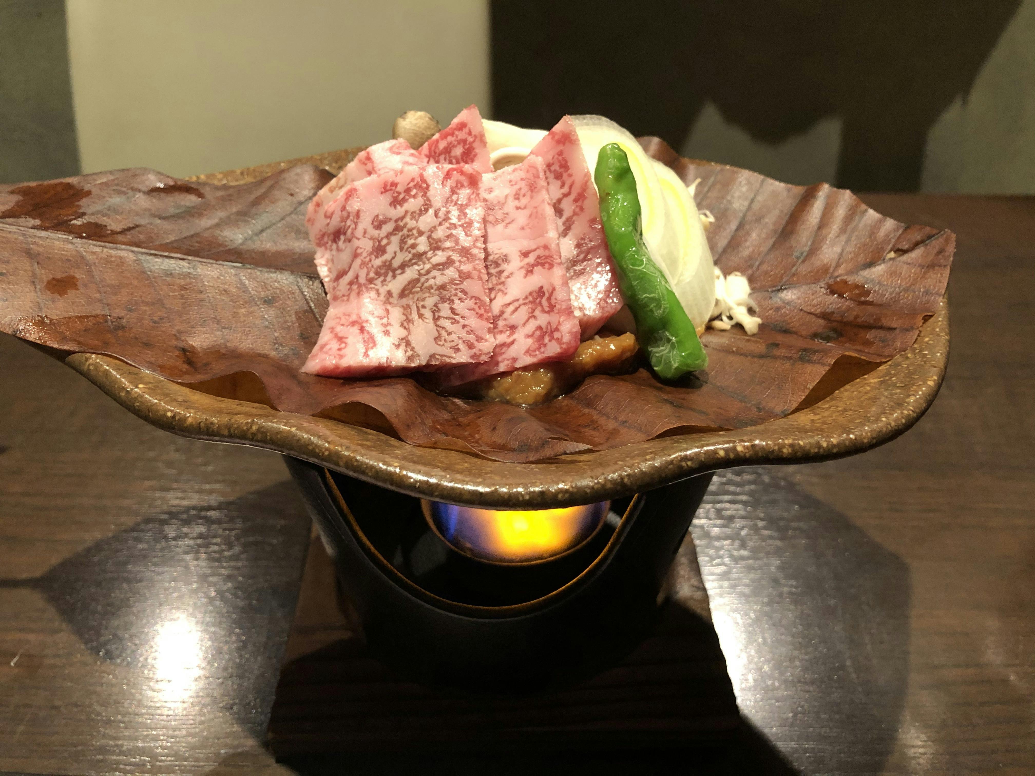1500円 宮崎牛A5ランクの陶板焼き