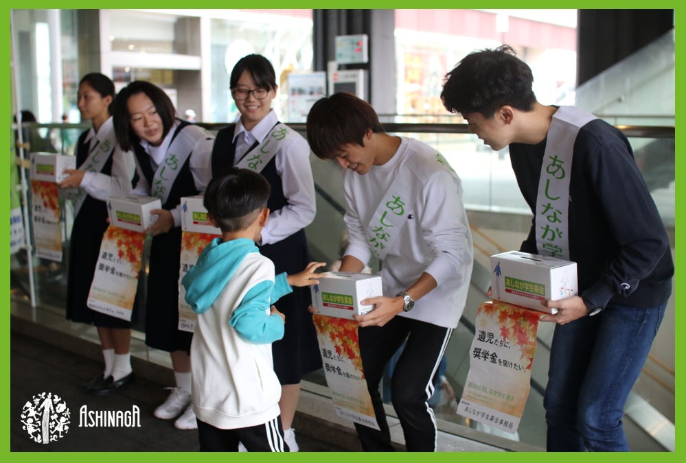 50年の歴史を持つ遺児支援のための募金運動団体で、学生だけで運営されています。毎年春と秋の4日間、全国約200か所で実施している街頭募金活動では、毎回のべ1万人のボランティアスタッフの参加があり、年間約2億5千万円の寄付を募っています。募金はすべて一般財団法人あしなが育英会へ寄付し、あしなが育英会の奨学金事業(国内奨学生事業・AAI事業)のために使われています。