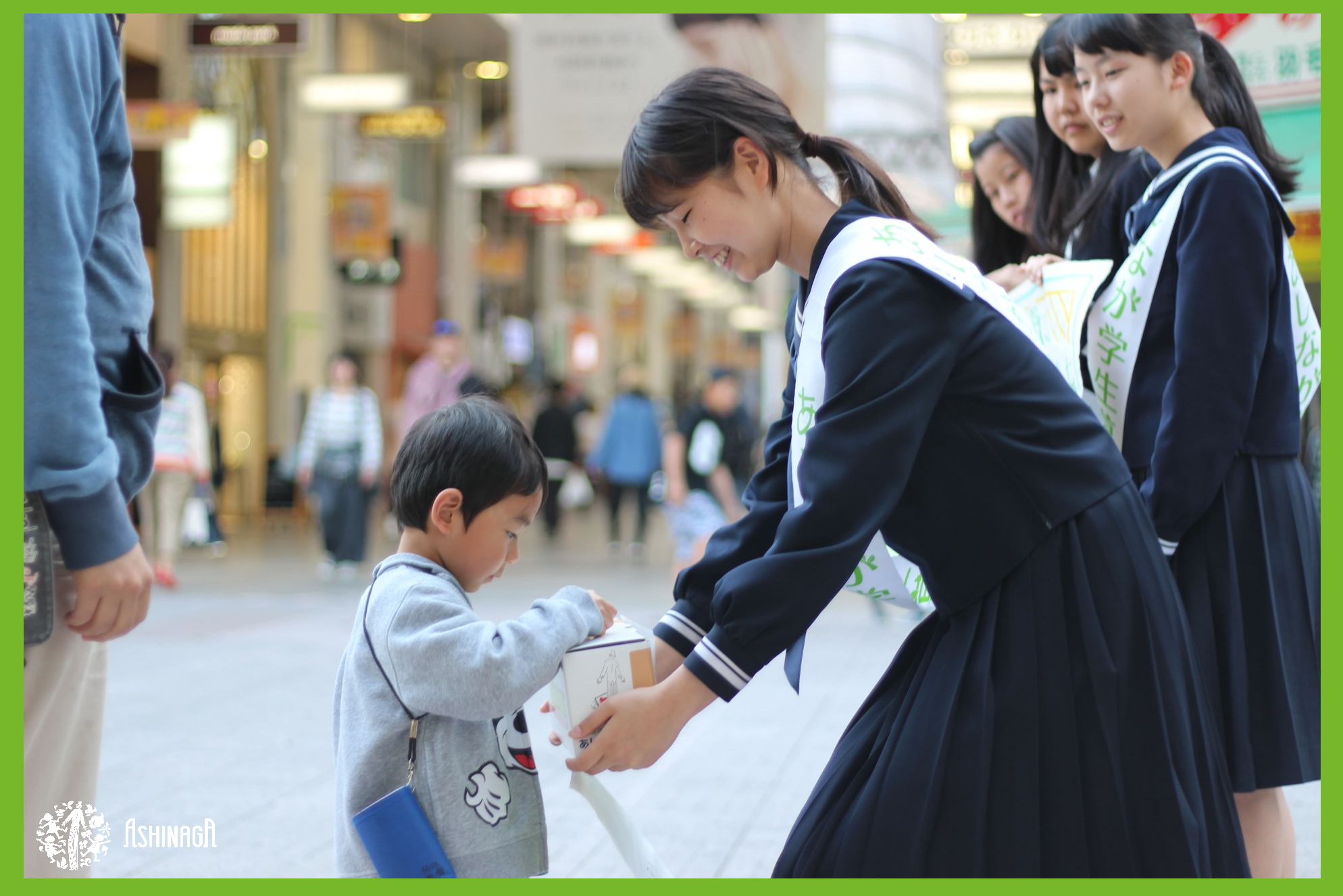 あしなが学生募金は、毎年春と秋に全国の街頭にて募金を行わせていただき、病気や災害、自死で親を失ったり、親に障がいがある日本国内外の子どもを奨学金で支援している一般財団法人あしなが育英会に全額寄付させていただいています。 現在、あしなが育英会の奨学金を利用し高校・大学・専門学校に進学することができている学生が全国に約6500人います。