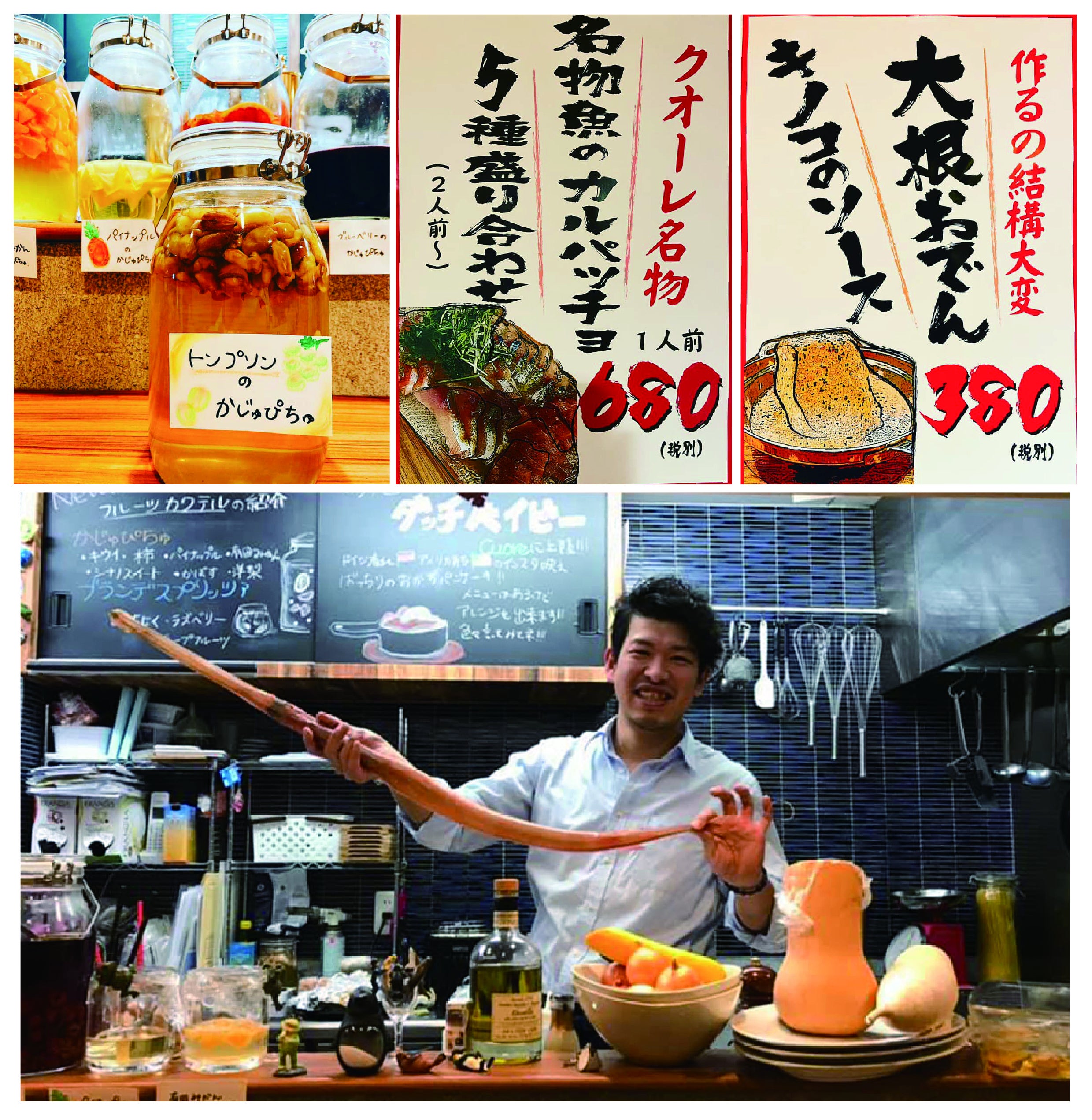 フレンチおでんや普段テーブルに並ばない珍しい魚などを提供しています。