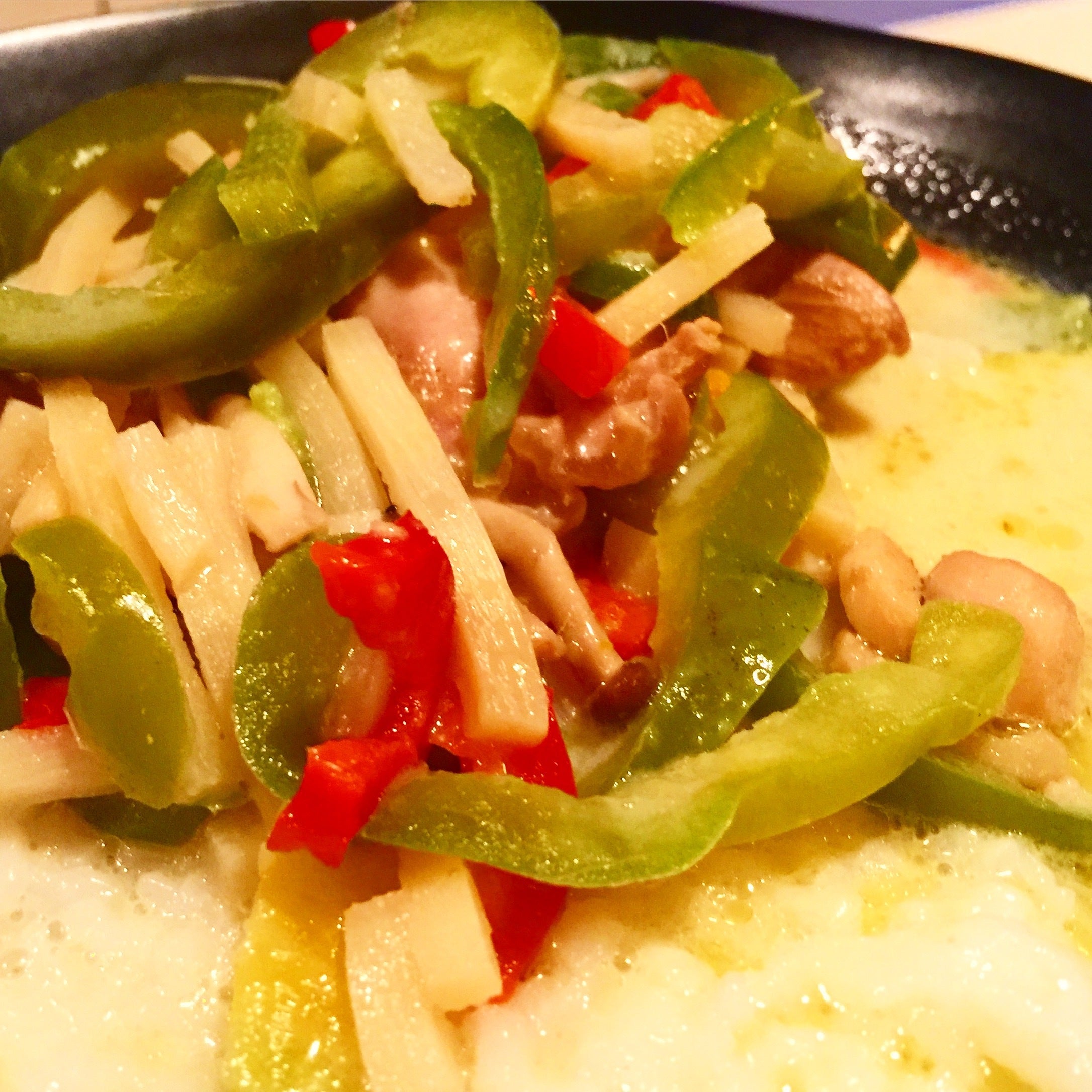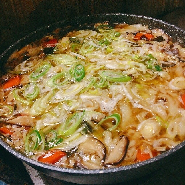 打ち上げ名物のせんべい汁とタイカレー