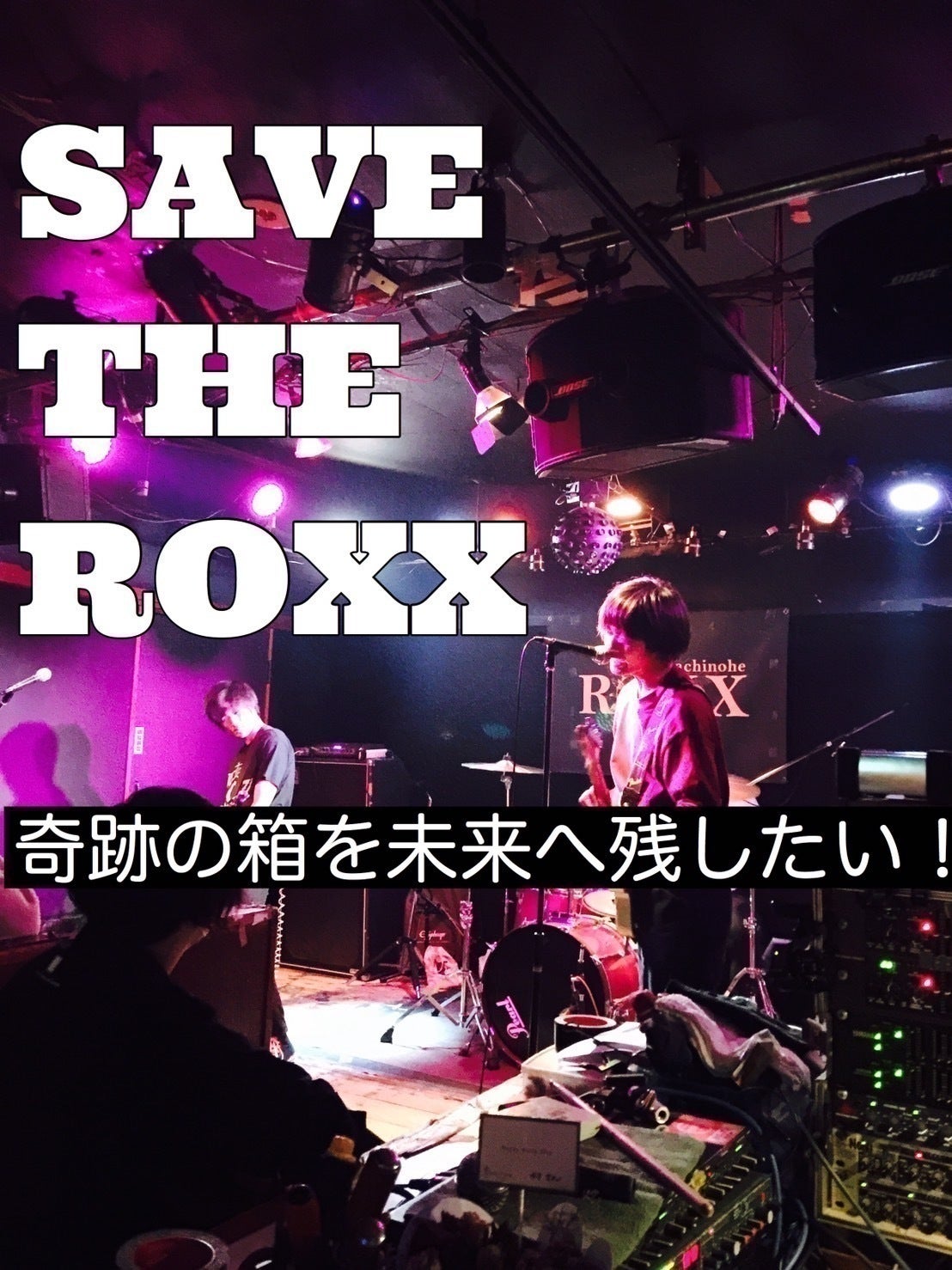 後に他の場所で再開できたとしても、「この温かい箱鳴りを再現できる場所」「奇跡の音を生み出すROXX」の営業を再開できるとは到底思えず、やはり何とかこの場所での営業活動を維持し、未来に「Live House ROXX」を残したいと考えるようになりました。