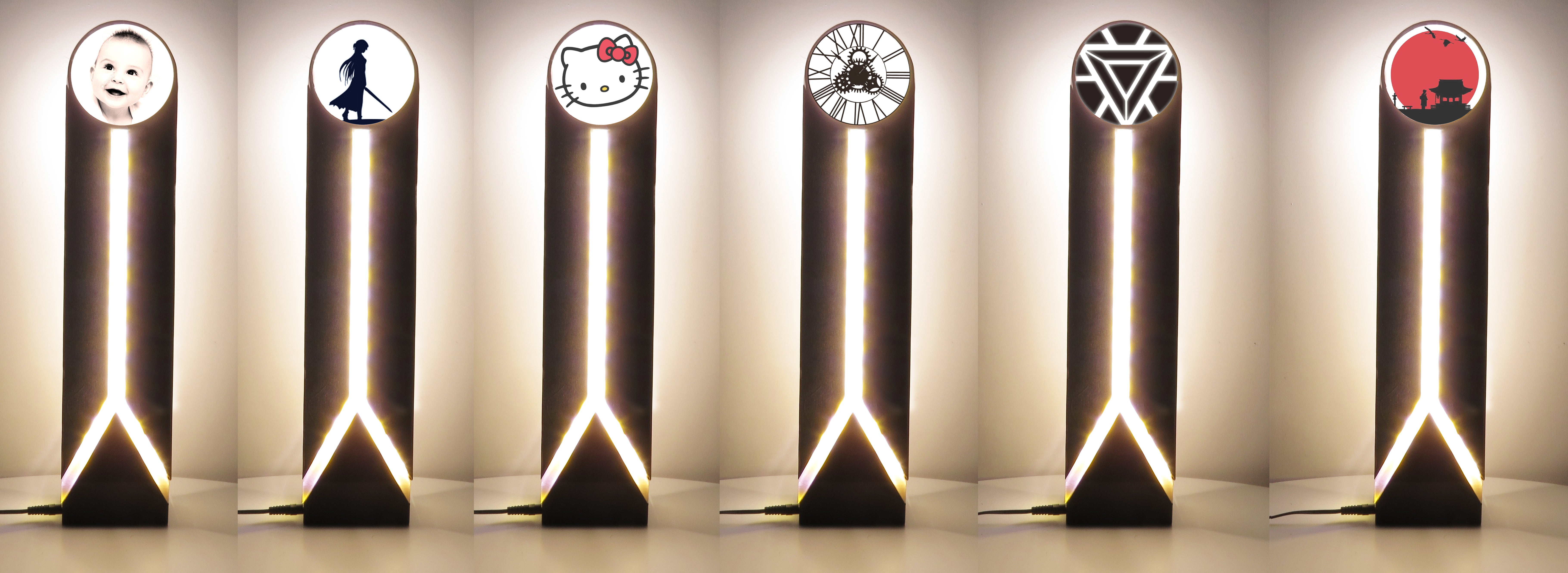 まず、それはランプの上にある丸いランタンですね。ステッカー、シルエット画像、リトファンなどを貼ることができます。中に磁石がありますから、お土産のマグネットやバッジをつけることもできます。適切な照明が画像の体験をよりよくするはずです。
