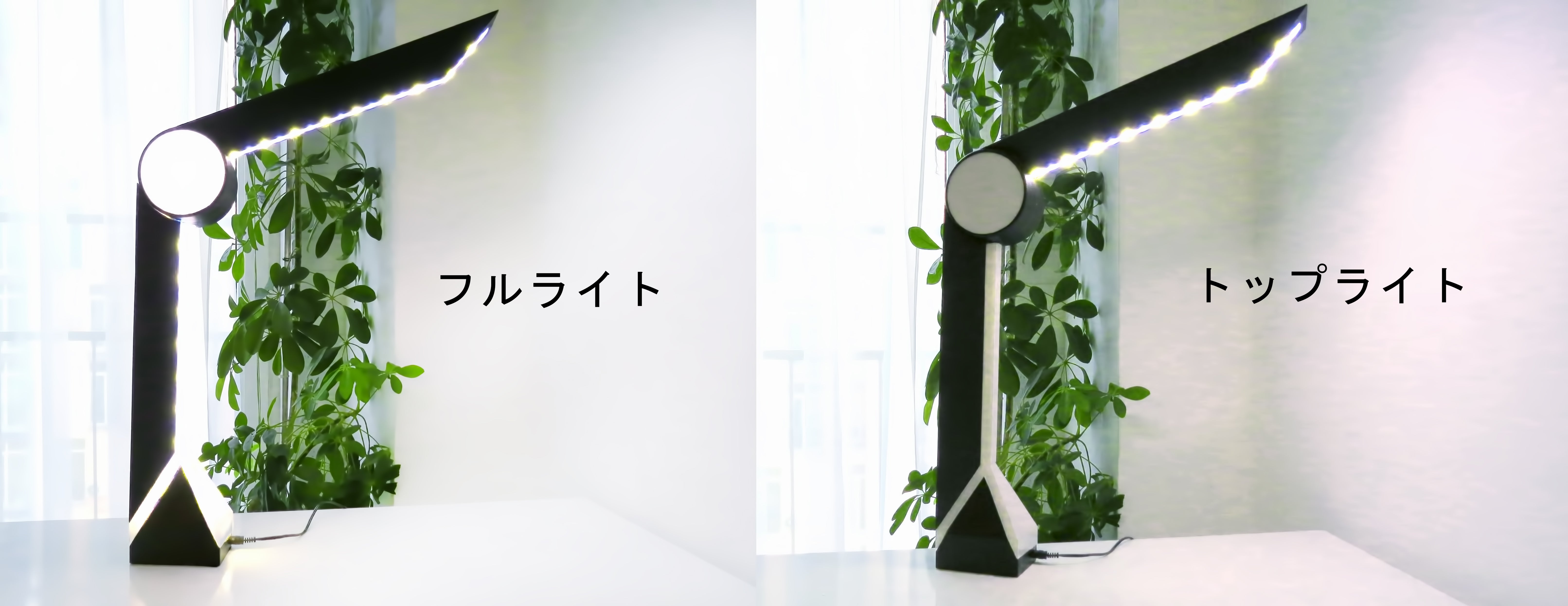 - まずはデスクライトとして使えます。スイッチのおかげで、トップライトと、明るくしたい時はフルライトを切り替えることができます。