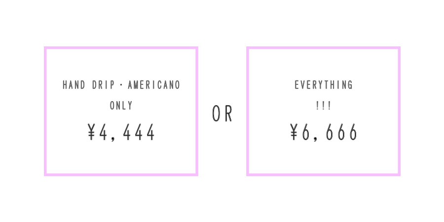 1つは、ドリップコーヒー、アメリカーノに限定した飲み放題。もう1つは、何でも飲み放題。