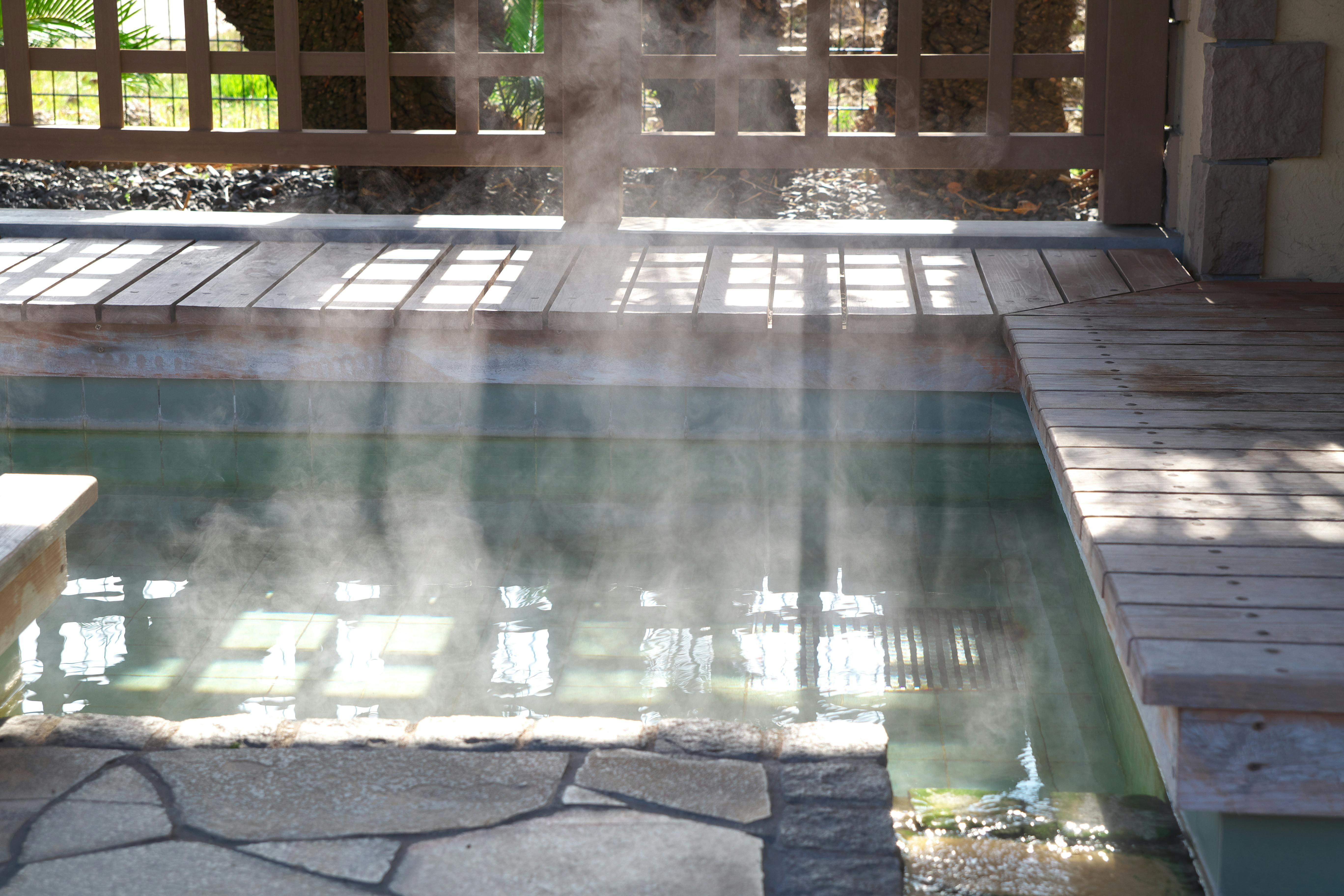 お風呂は源泉かけ流しです。無色透明で特徴がないように見えますが、肌にもやさしく、芯からあたたまります。三日にあげず日帰り入浴にお越しになるお客様もいらっしゃるほどです。