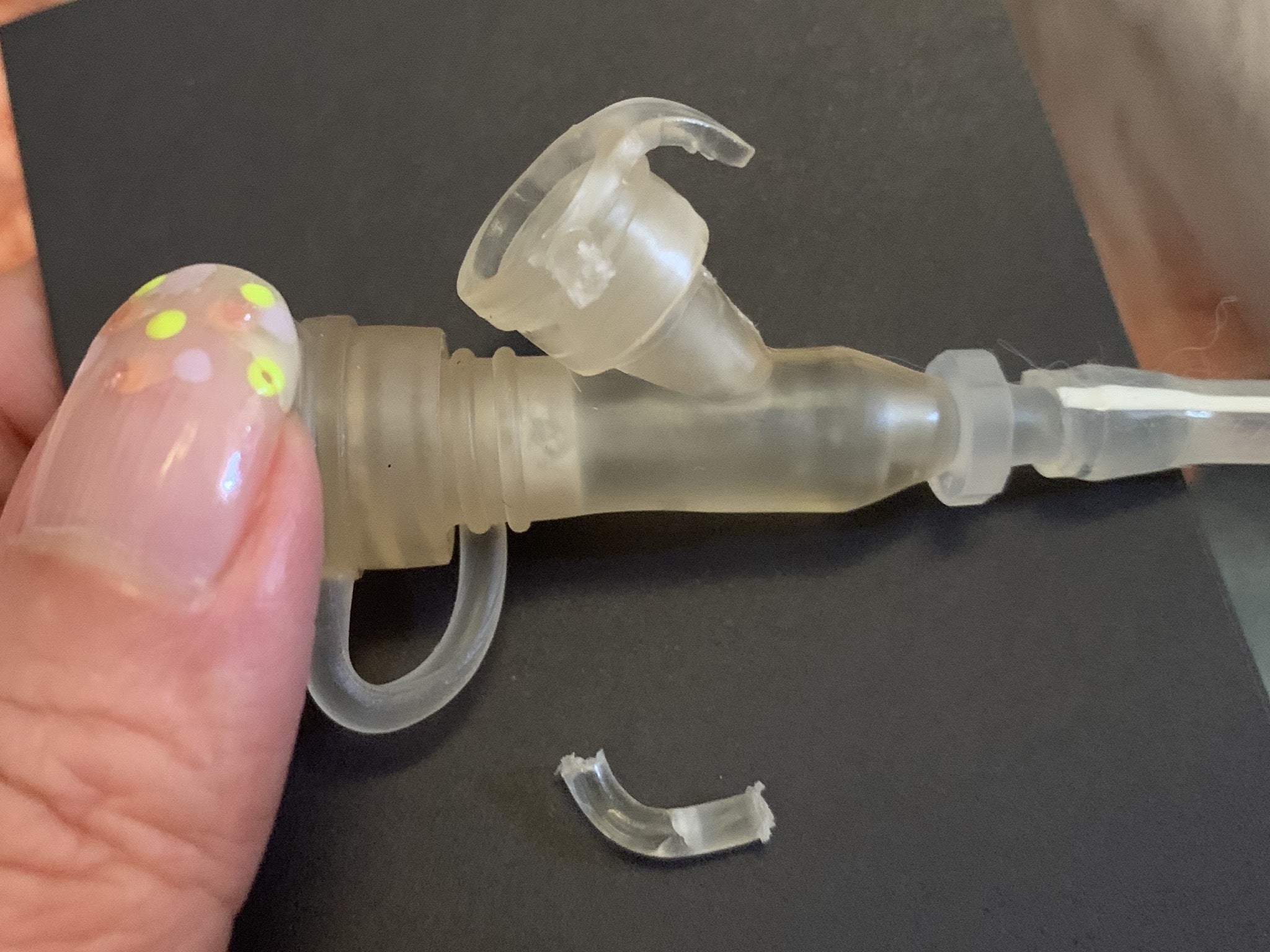 蓋を引きちぎって、液が漏れてました。