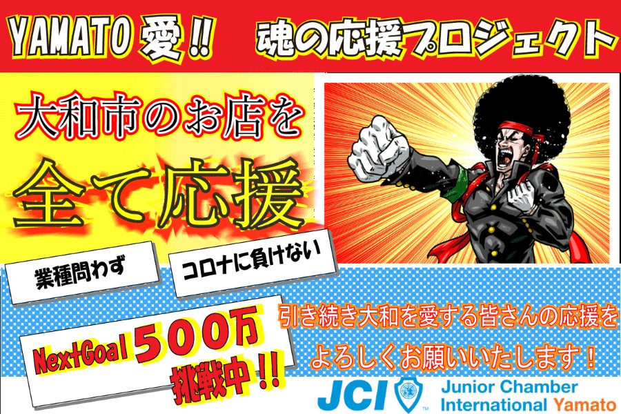 この度の新型コロナウイルス感染症の拡大予防への取り組みに伴い、4月に政府から出された緊急事態宣言による外出自粛や休業要請、時間短縮営業など様々な制限に対し、今も多くの市民、事業者が終息に向けて一丸となって頑張っています。その中、我々大和青年会議所でも「何か出来ることはないか?」「何かしなければ…」とメンバーで考え抜いた結果、このほどクラウドファンディングスタートさせました。愛する大和市の為に、そしてこれからの未来の為にどうか皆さまのお力添えをお願い致します!