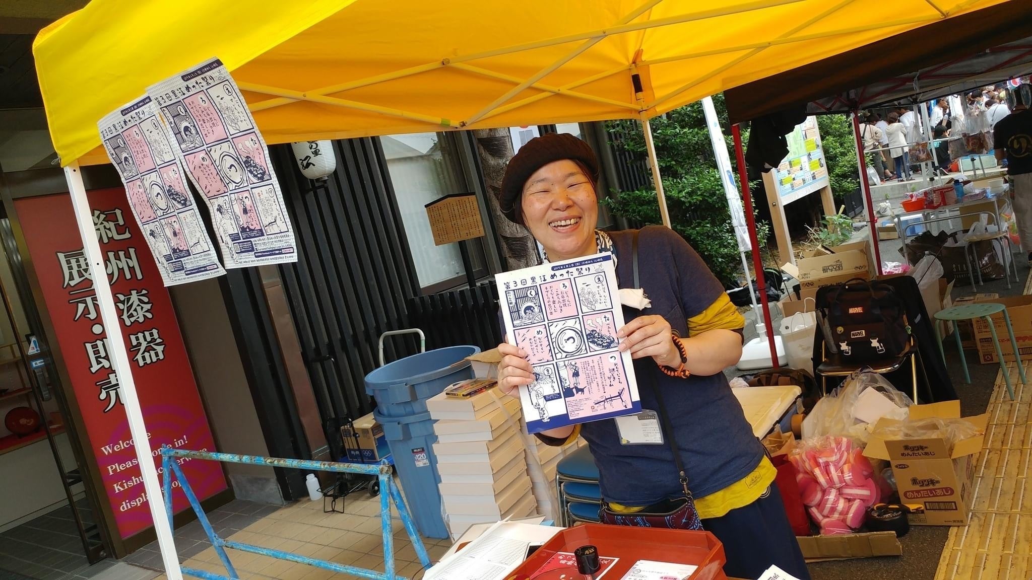 第3回黒江めった祭り本部 ここで、あらためて自己紹介をさせていただきます。私は黒江めった祭り実行委員会メンバーの瀬戸山江理(せとやま えり)と申します。私は海南市地域おこし協力隊の一員として黒江地区で活動をしています。黒江めった祭りの立ち上げに関わらせていただいたことで、黒江地区の魅力に気づき、この町に移住してきました。