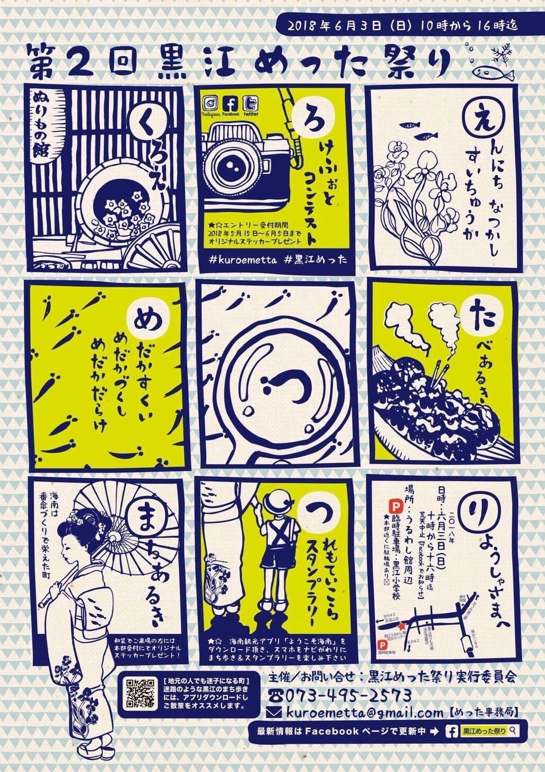 「黒江めった祭り」は海南市黒江地区で3年前の2017年に地元の有志によって初開催。当地区の路地でよく飼育されている「めだか」、その方言にちなんで「めった祭り」という名前になりました。多くの方に親しみやすい「めだか」と懐かしさを残す「黒江の街並み」、その両方を来場者の皆さんに楽しんでいただくことで、黒江地区の認知度向上を目指して活動が始まりました。