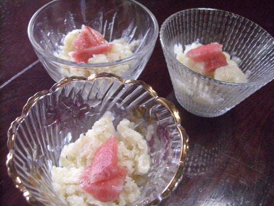 近所に住む、辰巳しほちゃんが作って来てくれた、お手製甘酒のシャーベットに、桃をのせたデザート♡ 「おいでハウス」に来る前は、市販のお菓子を良く食べていた福島の子どもが「甘すぎるから、お菓子もういらない」と言っているのは、一週間ヘルシーに食べてきた末の、大きな変化!お砂糖は、体をゆるめ、免疫力を低下させるから、おいでハウスでは極力NGにしています。