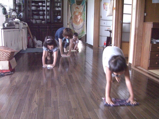 オーガニックなお掃除法で教わったやり方で、子どもたちは朝から雑巾がけをしています。みんなで住む家だから、みんなで綺麗にしよう。大人たちのちょっとした声がけ、心がけが、子どもたちの日々の充実感にもつながっていくことを感じます。だってみて、この頑張ってる姿と笑顔!